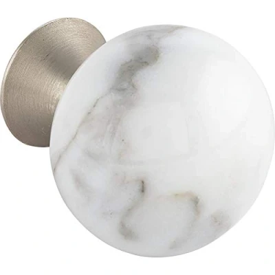 FURNIPART Porcelain Handle Bead Straight Diameter 28 mm Round Door Knob for Cupboard Marble White Die Cast Zinc Stainless Steel Effect