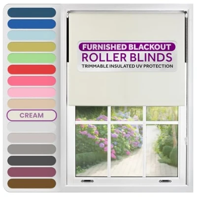 FURNISHED Roller Blinds Thermal Blackout Blind Trimmable Insulated UV Protection Child Safe Easy Fit Home Office Window Blinds, Cream, 150W x 165H cm