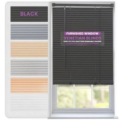 FURNISHED Venetian Blinds Window Blind PVC Easy Fit Curtains Trimmable Strong Home Office Black 160W x 150H cm
