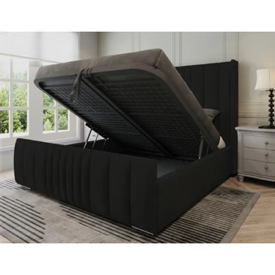 Furnishion Wingback Panel Small Double Bed with Storage Black Plush Velvet Ottoman Mattress not Included