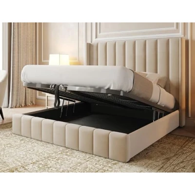 Furnishion Wingback Panel Small Double Bed with Storage Cream Plush Velvet Ottoman Mattress Included