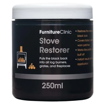 Furniture Clinic Stove Restorer Restores The Natural Matt Black Colour on Log Burners, Grates, & Fireplaces. Works Like a Polish 250ml