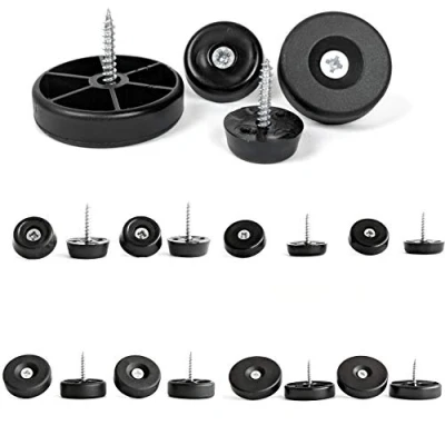 Furniture Sliders. Plastic Floor Protectors with Screw (Black, 21mm Diameter, Pack of 12) Made in Germany