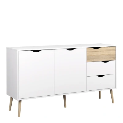 Furniture To Go Oslo Sideboard Large 3 Drawers 2 Doors in White and Oak