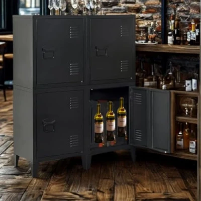 FurnitureR 1 Pack Black Sideboard, Modern Cabinet Design, Durable Metal Construction, Home Storage Solution, Removable Shelf, Compact and Functional