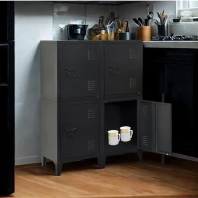 FurnitureR 1 Pack Black Stationery Cupboard, Modern Design, Durable Metal Construction, Ideal for Office Storage, Space Saving with Removable Middle Shelf