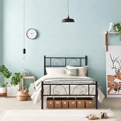 Versatile Design & Hassle-Free Assembly: This 3ft single platform bed boasts a timeless design that seamlessly fits into various spaces such as bedrooms, guest rooms, dormitories, apartments, and more. The package includes all the hardware, tools, and clear instructions needed for a straightforward assembly within an hour, making it a practical addition to any home. Sophisticated Headboard & Footboard: The bed frame features an elegant headboard and footboard, both designed to provide extra protection and prevent your bedding from slipping. The exquisite metal scroll work on both adds a refined touch of elegance to your bedroom decor. Practical Under-Bed Storage: With 32 cm of clearance beneath, this double bed offers a convenient storage solution. It's perfect for stowing away clothing, shoes, bags, suitcases, and other items, making it an ideal choice for those seeking a bed with additional storage capabilities. Durable Construction for Peaceful Slumber: Crafted with robust metal slats, side rails, and 10 sturdy legs, this bed frame can support up to 250 kg, ensuring a stable and comfortable sleeping experience. The 12 built-in slats provide a solid foundation for your mattress, eliminating the need for a box spring and offering a reliable, wobble-free sleep. Fast & Easy Assembly: All the necessary parts, hardware and easy-to-follow instructions are included in one efficiently packed box for simple set up within an hour, saving you time and hassle. We also provide an assembly video for a more direct and clearer demonstration.