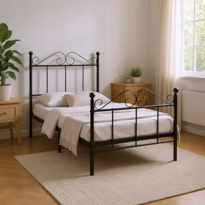 FurnitureR Black Metal Bed Frame Durable and Sturdy Platform for Adults, Single Size, No Box Spring Required, Easy Assembly