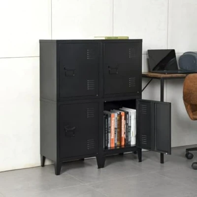 FurnitureR Black Storage Cabinet, Industrial Style, Metal Construction with Removable Shelf, Home Office Organization, Space Saving Design