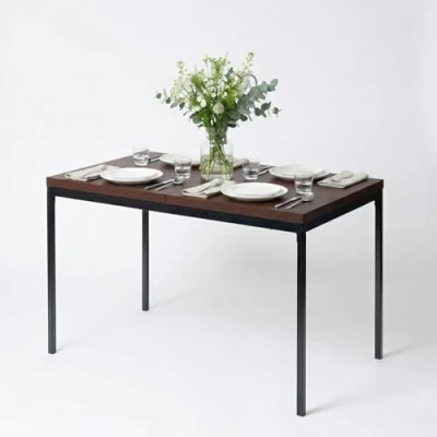 Generously sized at 120x70x75cm, this table comfortably accommodates 4-6 people, making it perfect for family dinners, gatherings and meetings. The Vintage Wood finish adds a touch of elegance and modernity to your dining room, kitchen, or breakfast nook. Equipped with 4.5cm thick tabletop, strong metal steel legs and built with high-quality materials, this dining table ensures stability and support. Ideal for dining, this table also serves as a multifunctional piece for other activities such as working, studying, or crafting, making it a versatile addition to your home. The table legs are equipped with non-slip feet, preventing scratches on your floor and providing additional stability.