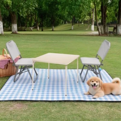 FurnitureR Folding Table with PU Padded Tabletop, Portable Multifunctional for Indoor/Outdoor Home Parties Picnics and Games,86x86x71cm,Camel