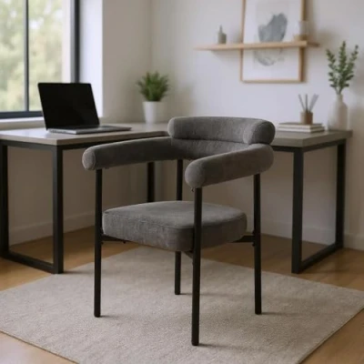 FurnitureR Gray Upholstered Desk Chair, Ergonomic Design, Sturdy Support, Ideal for Home Office, Adjustable Height, Modern Style
