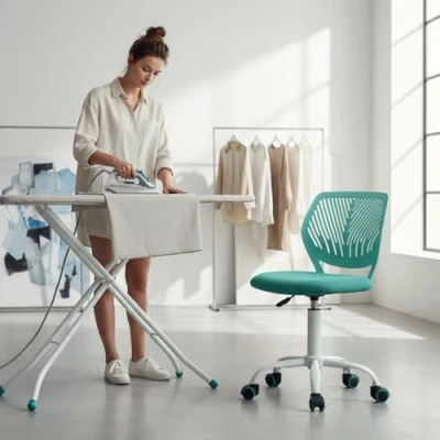 Ergonomic Comfort Design: The chair is ergonomically designed to support the body and minimize discomfort and fatigue during prolonged ironing tasks. Height adjustable: The chair height can be easily adjusted to match the ironing board, ensuring a comfortable and efficient ironing posture. Breathable mesh backrest: The mesh backrest promotes air circulation, keeping you cool and comfortable even during prolonged use. Smooth Roller: Five rollers allow you to easily move around the ironing area, providing convenience and flexibility. Fashionable light color: The fresh mint color enhances the appearance of the laundry room, adding a modern and pleasant feeling to your space.