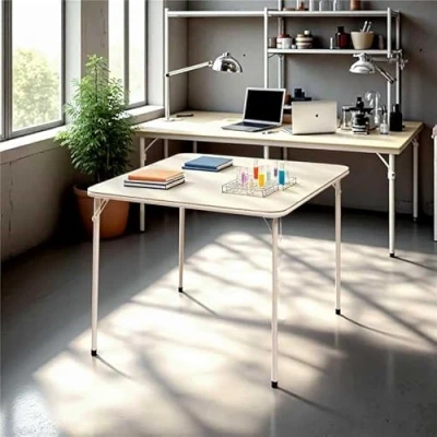 FurnitureR Lab Foldable Table Portable Workstation for Scientific Experiments, Easy to Clean, Durable Construction,86x86x71cm,Camel