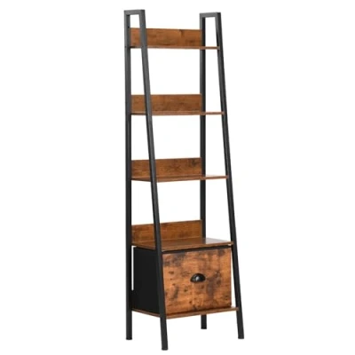 FurnitureR Leiter Bookcase, Industrial Storage Shelf, 5 Tier Display Open Shelf with Drawer for Living Room, Bedroom, Home, Office, Kitchen, Garden, 42.5 x 29 141 cm, Brown
