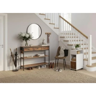 Three spacious drawers and two open shelves provide ample storage for keys, mail, electronics, and decorative items, helping you keep your hallway or living room organised and clutter-free every day. Built-in power outlet adds modern convenience, allowing you to charge devices or power lamps and electronics directly from your console table, making it a truly multi-functional piece for your home. Industrial design with a vintage wood finish and black metal frame brings a contemporary touch to your hallway, blending seamlessly with a variety of UK home décor styles from modern to rustic. Generous dimensions (180x30x80cm) make this chest of drawers ideal for large entryways, living rooms, or offices, providing maximum storage and display space without sacrificing style. Easy assembly with included instructions means you can set up your new console table in minutes, and the smooth surfaces are simple to clean and maintain, ensuring your hallway always looks tidy and welcoming.