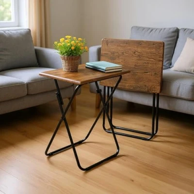 VERSATILE DESIGN: Compact folding TV tray table with walnut-finished MDF top and sturdy black metal frame, perfect for snacks, laptops, or as a side table SPACE-SAVING: Easy-fold mechanism allows for convenient storage when not in use, ideal for small living spaces and apartments DIMENSIONS: Table top measures 38.1 x 48 cm with a comfortable height of 66.5 cm, providing ample surface area for daily use STURDY CONSTRUCTION: Robust metal frame in classic X-shape design ensures stability, while the wood-look top adds a touch of warmth EASY ASSEMBLY: Ships flat-packed with straightforward assembly required, featuring a practical design for quick setup and storage