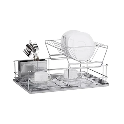 FurnitureXtra Stainless Steel Dish Drainer with Drip Tray and Cutlery Holder (2 Tier Steel)