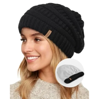 FURTALK Knit Beanie Hat for Ladies Fleece Line Ski Skull Cap Slouchy Winter Hats Women Black