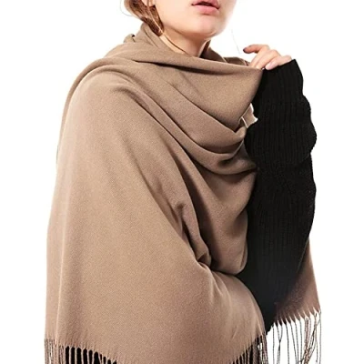Cashmere Feel Scarf Shawl: Blend of skin-friendly polyester and viscose. It's soft, medium weight, and has a subtle sheen. Drapes nicely and stays wrinkle free. Extra Long large Scarves Size About 78.7"Wx25.6"L (200*65cm, including Length of fringe); Whether you wrap it like a scarf or drape it like a shawl. Winter Women Scarf: Soft Warm materials makes this scarf reversible, doubling the number of ways you can coordinate it with your wardrobe. Indoors, keep this scarf handy in the TV room or at a party night; And on warmer days, wear it as an outdoor wrap; Great idea for evening wraps or wedding shawls. We put a lot of time and efforts to develop the products for years; We have become experts at hats and scarves, made with outstanding raw materials in a trendy way; We believe that you will feel the difference once you get our hats and scarves. If you are looking for a hat to match your scarf, here we offer a lot for your choices. Note: Gentle cycle or hand wash in cold water. Do not bleach.