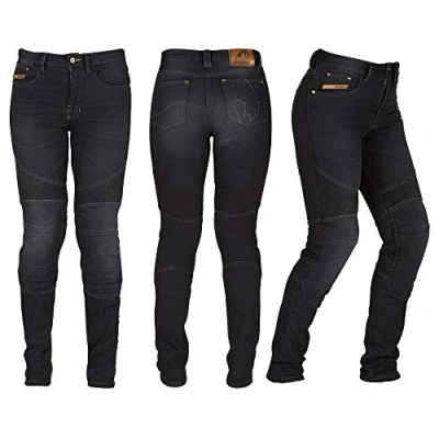D3O knee and hip protectors. D3O is a very soft material where molecules lock in the event of an impact to absorb kinetic energy. This technology makes it possible to create soft, ergonomic and top performing protectors for more security and comfort. Aramid fibres with padded reinforcements at the bottom. Lightweight and heat resistant, Aramid fibre strengthens the materials it is used with against abrasion, and slows down heat transfer to the skin. Adjustable knee protectors. 3 positions. Tapered cut: This cut starts out loose in the pelvis & narrows towards the bottom. Maintains the comfort that is essential for two-wheelers, while at the same time enhancing the silhouette. 5 outside pockets. Stretchable material. For maximum ease of movement on your bike, and in everyday life. Denim. Denim is a comfortable fabric in summer, which lets the air pass through without exposing your legs. Furygan denim jeans have been enhanced with different protection technologies to give you enhanced performances in case of a fall.