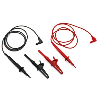 High-safety test lead set with 500mA, 1000V fused leads. Cat III 1000V rating. Double-insulated red/black probes with 4mm banana plugs. Compatible with Fluke and other multimeters. Includes crocodile clips.