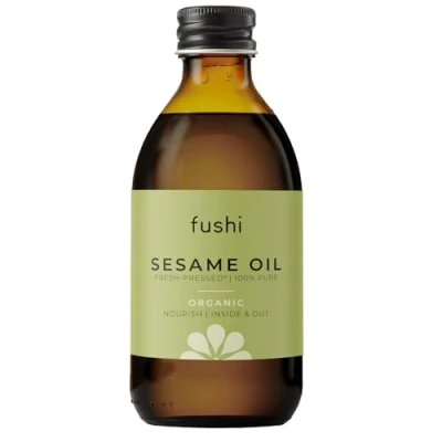 Fushi Organic Sesame Oil 250 mlVirgin & Fresh Pressed Rich in Vitamin E, B Complex Minerals Best for Scars, Dry Skin Fine Lines Ethical Vegan Manufactured the UK