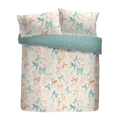 Fusion Evelyn Duvet Cover Set, 52% Recycled Polyester 48% Cotton, Single 140x200cm, Multi Coloured, Watercolour Bows Pattern, Reversible, 56 Pick Thread Count