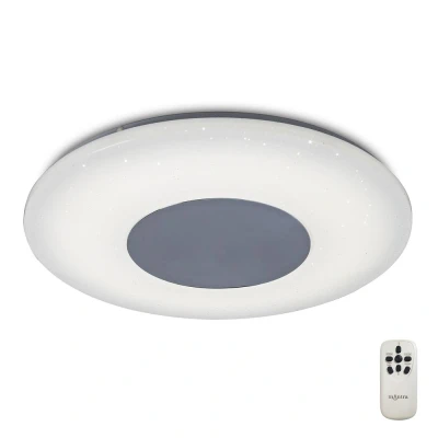 Providing another remarkable flush LED option, this is an ideal energy saving option for a modern low ceiling space. Its distinctive polished chrome circular plate centres the exclusive crystalline acrylic diffuser, curving out to create a doughnut shape. This inventive diffuser design houses 48W integral LED's which have a dimmable scope of 3000K-6500K. To make this range even more appealing the dimmable function is adjusted using the remote control included with the light, for added enticement and ease. This has a 3 year warranty.
