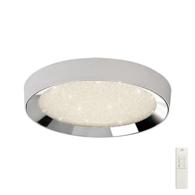 Fusion Flush Ceiling Light 50cm Round 40W LED 3000 6500K Tuneable, 1920lm, Remote Control Chrome, Acrylic
