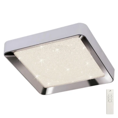 Fusion Flush Ceiling Light 65cm Square 40W LED 3000 6500K Tuneable, 3200lm, Remote Control Chrome, Acrylic