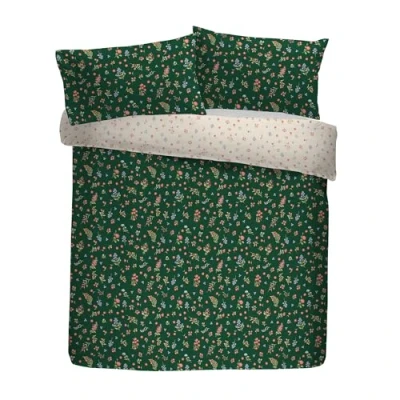 Fusion Nelly Duvet Cover Set, 100% Recycled Polyester, Super King 260x220cm, Green, Pinsonic Ditsy Floral Pattern, 2 Pillowcases