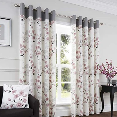 Bring a relaxed, contemporary sense of the orient to your home with this captivating watercolour floral print of pretty cherry blossom trails. A perfect choice for those looking for a simple statement; this delicate, eastern inspired design will lend your living space a calm, serene feel. These ready-made 100% cotton eyelet curtains are fully lined with a contrasting plain top border. Matching piped cushions are also available to complete the look for your room. Fusion offers an affordable collection of fashion bed linen, cushions and curtains will brighten up any room at prices which will suit any pocket.
