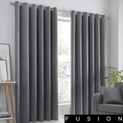 A simple, classic, semi-plain set of dim-out eyelet curtains that will suit any room in the house. These curtains feature a triple-woven fabric to effectively reduce the light levels, making them perfect for the summer. They also help keep the heat in during the cold winter months. With an eyelet heading style that ensures the curtains are easy to hang and have a lovely drape. Complete the look with the matching piped cushion for a harmonising look. Fusion offers an affordable collection of fashion bed linen, cushions and curtains will brighten up any room at prices which will suit any pocket.