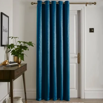 Fusion Teal Single Curtain W66 x L84 (168 214cm) 1x Panel Eyelet in Blue Thermal for Bedroom/Living Room & Drape Door Strata Collection