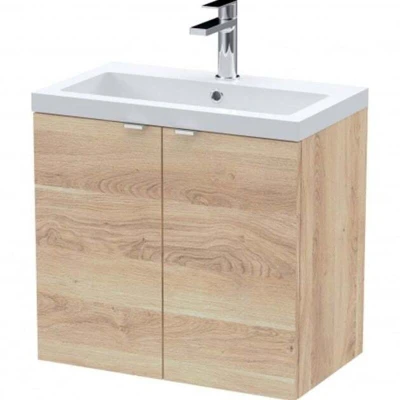 Fusion Wall Hung 2 Door Vanity Unit with Basin 600mm Wide Bleached Oak Hudson Reed