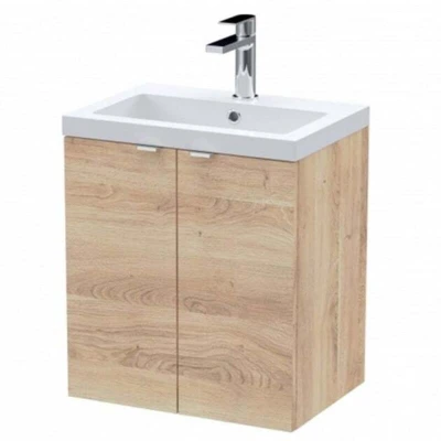 Fusion Wall Hung 2 Door Vanity Unit with Polymarble Basin 500mm Wide Bleached Oak Hudson Reed