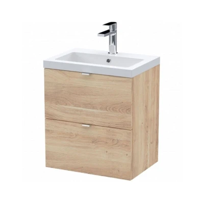 Fusion Wall Hung 2 Drawer Vanity Unit with Basin 500mm Wide Bleached Oak Hudson Reed