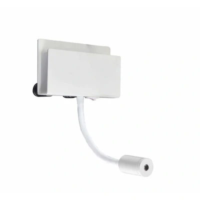 This range is a trio of rectangular wall lights available in white, aluminium and ash grey. The substantial framework is shaped and curved under to resemble a folder which holds the encased integral LED's allowing the illumination to be dispersed as an uplighter and through the sides. The bottom of each light features an extended flexible arm with an added LED spot light for increased lumen output and directionality, perfect for detailed work and late night reading. This has a 3 year warranty.