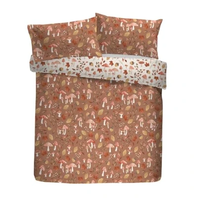 Fusion Woodland Dreams Duvet Cover Set, 52% Recycled Polyester 48% Cotton, Super King 260x220cm, Natural, Floral Pattern, Reversible, Orange