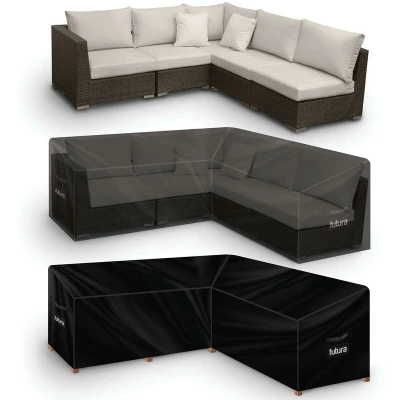 Futura Premium V Shaped Garden Furniture Covers Waterproof 215x215x80cm, Heavy Duty 600D Oxford Fabric Outdoor Rattan Corner Sofa Cover, PVC Lined, Air Vents and UV Safe