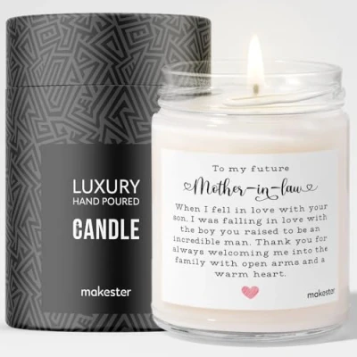 Future Mother in Law Candle Luxury Soy Wax Hand Blown Glass Madagascan Vanilla, Jasmine, Sugared Almond of The Groom Gift Makester