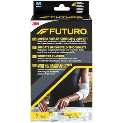 FUTURO Comfort Elbow Support with Pressure Pads, Medium (25.4 27.9 cm) Provides Immediate Compression, Dual Pads for Targeted to Sore Elbows, Adjustable Strap, Breathable