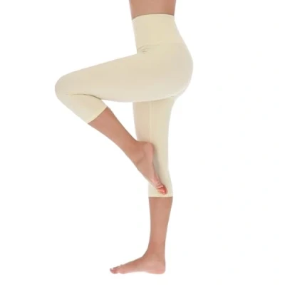 FUTURO FASHION 3/4 Leggings for Women High Waisted Buttery Soft Capri Non See Through Stretchy Casual Everyday Yoga Running S XXL Beige