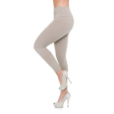 FUTURO FASHION Full Lenght Womens Fleece Lined Leggings Thick High Waisted Cotton Women's Leggings, Thermal Warm Pants Plus Size Lwpp28 Beige