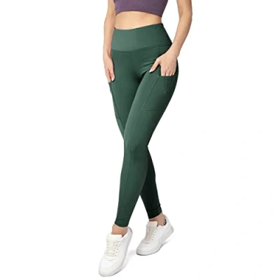 FUTURO FASHION Ladies Sport Leggings with Pockets I Slim Push up Stretchy Workout Gym Tummy Control High Waisted Yoga Pants Women Activewear Size 8 18 UK Green