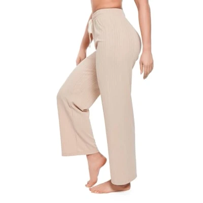 FUTURO FASHION Women Casual Loose Long Trousers Straight Leg Elastic Waistband Comfortable Stylish Pants for Ladies, Size S/M Beige