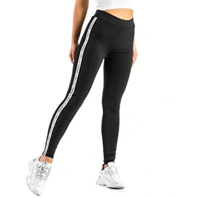 FUTURO FASHION Women Leggings High Waisted with Panel Tummy Control Side Stripe Stretchy Pants Slimming Opaque Casual Wear Sport Yoga Workout Black S/M FS767