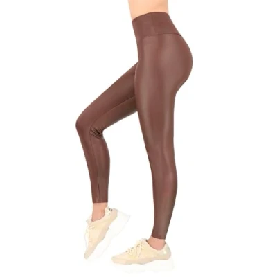 FUTURO FASHION Women’s Shiny Wet Look Leggings Butt Lifting High Waist Non See Through Design Stretchy & Breathable Ideal for Casual Party Fitness Variety of Colors Brown 5XL