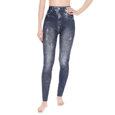 DENIM-INSPIRED STYLE: Combines the trendy look of jeans with the stretchable comfort of leggings, available in Blue, Navy, and Black shades PERFECT FIT & SHAPING: Crafted from 90% polyester and 10% elastane for a snug fit that lifts and shapes your figure. BREATHABLE & LIGHTWEIGHT: Designed with breathable fabric to ensure comfort for all-day wear, in any season. SECURE NO-ROLL WAISTBAND: Enjoy a no-slip t with a waistband that stays in place during all activities. VERSATILE FOR ALL OCCASIONS: Ideal for work, casual outings, gym sessions, or a night out, making them a must-have for any wardrobe.